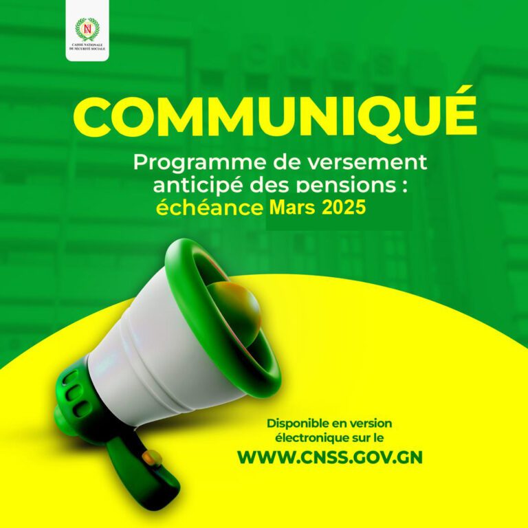 Les pensionnés recevant leur paiement par virement bancaire, téléphonie mobile et cash minute sont invités à se rendre dans leur banque ou à consulter leur compte mobile à partir du mardi 25 février 2025 pour percevoir leur pension de retraite.